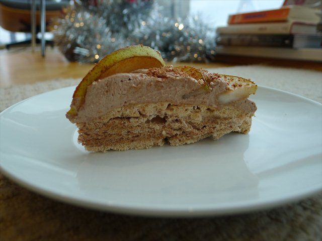 Ooo, I decided just yesterday that it was time for me to tackle something involving meringue! It looks delicious, chocolate and pear is ace 🙂