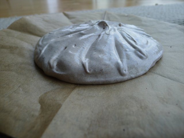 3. Build a dome of the meringue on the baking paper. Use the side of your spatula to make slashes upwards around the perimeter, to encourage the meringue to rise.