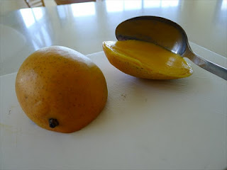 On Christmas day I learned the following from my step sister’s partner. The technique – like him- is looking like a keeper. All you need is a sharp knife and a big metal spoon (the kind that sits in your third drawer and you use to serve a cous cous salad). As for whether you suck the pip at the end, well that choice is entirely up to you.