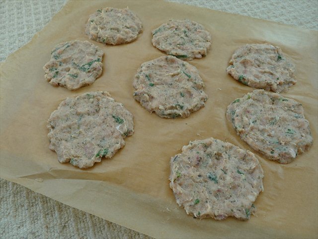 Mix and form 8 patties with your hands. Chill the patties on a tray lined with baking paper in the fridge for 20 minutes.