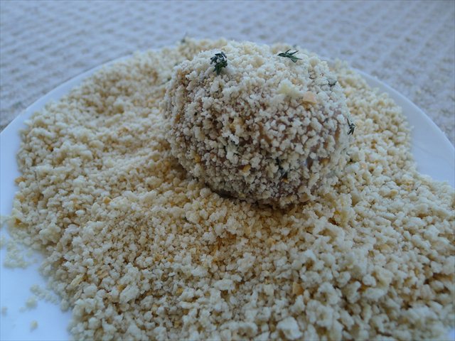 6. Get three small bowls and create a production line. Put the flour into a small bowl. In the second bowl add the two remaining eggs and beat them and the milk together with a fork. In the third bowl place the breadcrumbs.
