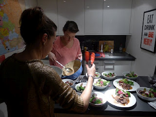 I had some help plating up the Coq au Vin (this version made with diced chicken thighs instead of drumsticks- what we lost on flavour was made up for in convenience of eating with a fork out of a bowl)