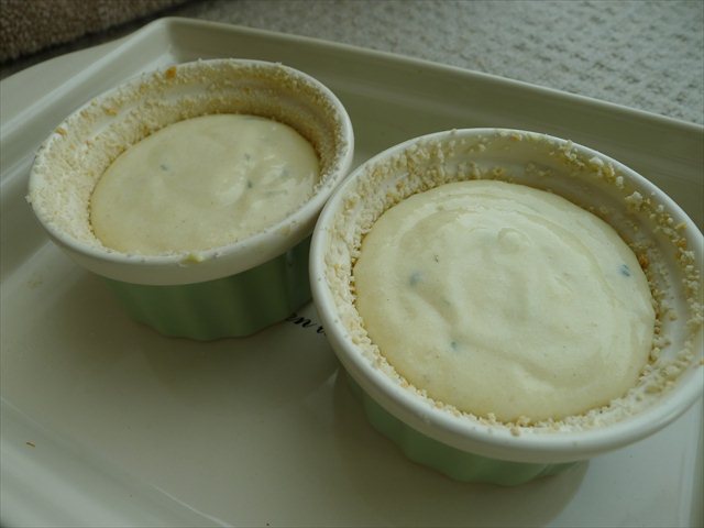 7. Divide the mix gently between the ramekins and place in a baking tray filled half way up with hot water.
