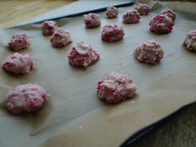 1.Preheat oven 180 C and line 2 baking trays with greaseproof paper (or line one and be prepared to freeze half the mixture)