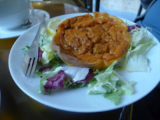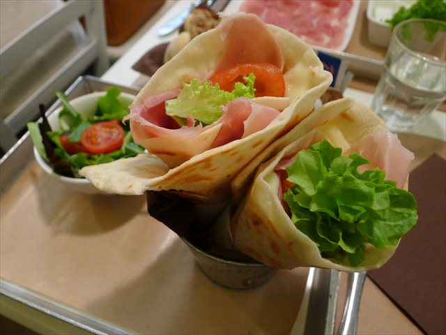 A piadina (€8.5) is a crepe like flat bread, scorched on the outside and pliable and oozy with melted cheese swaddled in the centre. It comes with the choice of crisps or salad on the side.
