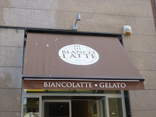 From the front entrance on Via Filippo Turati Biancolatte’s biscuit hued awning presents itself as yet another gelato store.