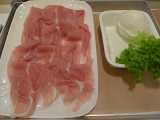But behind that the space opens to reveal a modern, light, warm and white dining room. There are wooden floor boards underfoot and two dining rooms set with square tables with brown paper place mats. There are seats along a bar. There’s an open kitchen where chefs are preparing piadinas and platters of cheese and cured ham, flanked by baskets of fresh green leaves and balls of buffalo mozzarella, bouncing in ghostly hued water. The clean dairy-style design reminds me of ‘La Fruiterie’ in Val d’Isere and Australia’s Jones the Grocer.
