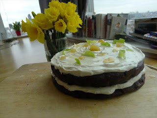 I love the sunshining colours. I love how the frosting squelches out the side. I love the surprising bursts of ginger and the zing of lime. I like that it’s essentially gluten free. It’s happy making stuff for days when the sky is a little grey.