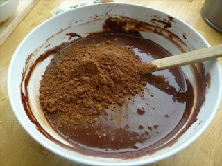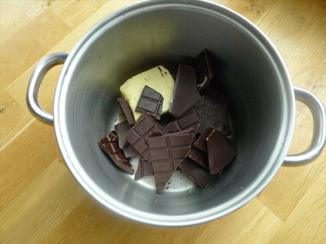 3) In a small saucepan combine the chocolate and the butter. Place over a low heat and stir until smooth then remove from heat.