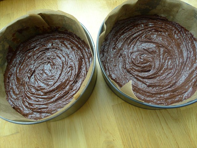 2) Grease and line with baking paper two 23 cm springform cake tins (or one, but you’ll have to bake the cake twice).