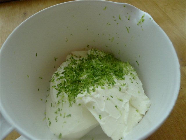 1) Beat together the cream cheese, zest of one of the limes, rum and the stem ginger syrup until smooth.