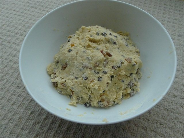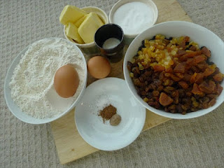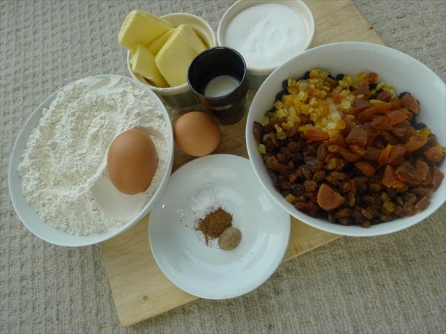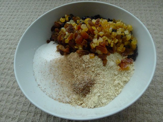 14 oz/400 g mixed fruit (I used 100 grams of currants, 100 grams of sultanas, 100 grams of mixed peel and 100 grams of chopped dried apricots)