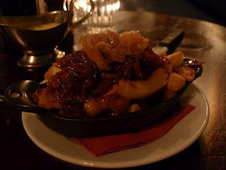 The chicken poutine arrives as chips, smothered in melted wads of Bermondsey cheese and a rich stew of chicken leg meat in a dark gravy. On top are some wafts of crisp chicken skin. It’s a strange world when you’re turning for light relief in a dish to triple cooked chips.