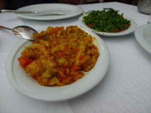 The roasted and aubergine ‘special salad’; a spectacular combination of tomatoes, onion, parsley and pomegranate molasseses.