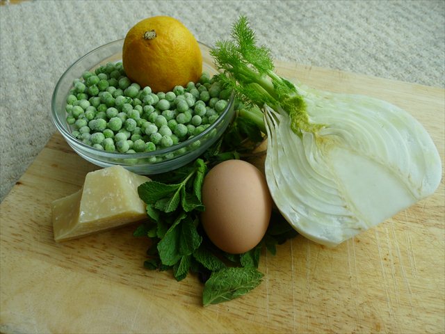 What you’ve got is a restrained balance of flavours; the mild aniseed of the fennel, sweetness of peas (frozen are fine- we’ve all got better things to do than pod peas), richness of parmesan and then a breath of fresh air from mint and lemon.