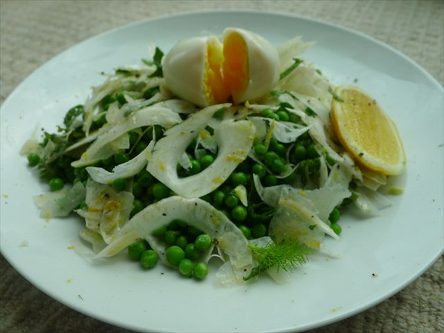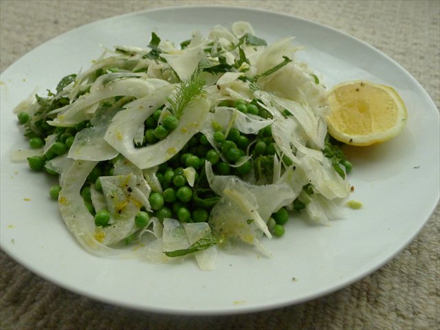 Pea, fennel, mint, lemon and parmesan salad