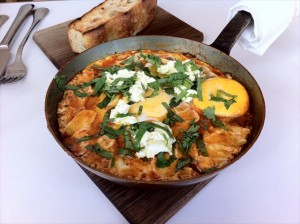Good choices from there include the shakshuka – baked eggs in a piquant tomato sauce with a cap of smoked yogurt cheese (£11), with wodges of fresh baked bread or the berry salad with yogurt and granola (£6.5).
