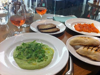 A plate of broad bean puree and another of De Beauvoir Smoked Salmon with a side of Corrigan’s soda bread and a glass of pink wine is a perfectly civilised way to spend a lunch time in Central London.