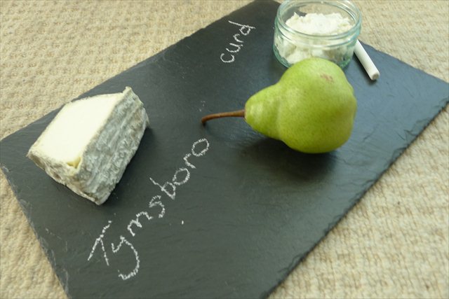 I placed the curd in a small vessel so it didn’t ‘t creep all over the plate. I added the Tymsboro and kept them at a cool room temperature. I scrawled what they were on the board in chalk; for clear communication, to delineate their boundaries and for sheer novelty.