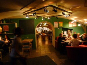 Teplo has good food, interesting beers, international wines and charming staff. You’ll find it downstairs and across a courtyard stuffed with tables where you can sit if the sun is shining. If it’s not, inside it’s cosy brimming with framed vintage photos, gingham tablecloths, plush couches and tables that totter. In most corners you’ll discover kitschy items- from teddy bears to trucks have been tucked away.