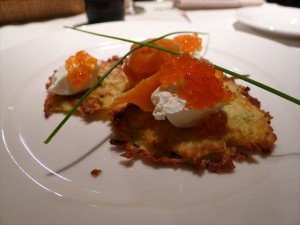 Lunch is served from 1pm- before that they do brunch which also looks good. For lunches and dinner it may prove wise to book- Teplo is popular with both visitors and locals. One dish not to miss are the potato pancakes, crisp and straggled on the edge, topped with buko cheese and roses of smoked salmon and roe.