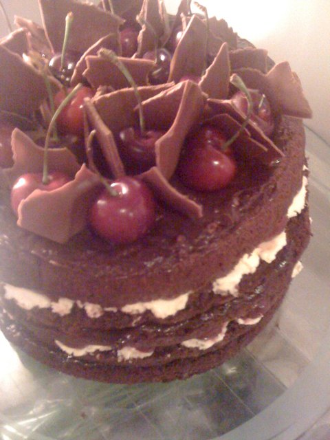We’ve had this layered construction of cherry mousse, brownie, sponge and booze (circa 2011)