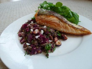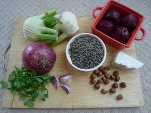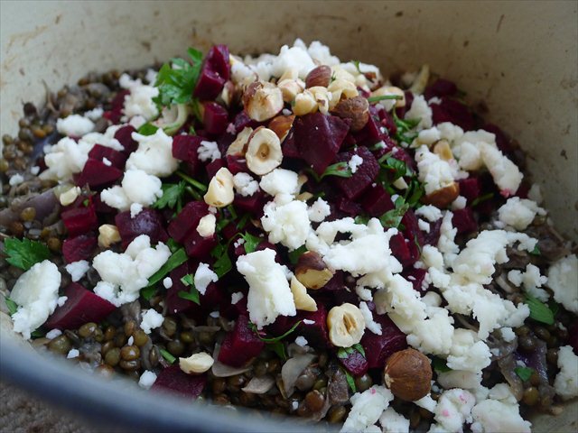 Du puy lentils with beets, fennel, goat cheese and hazelnuts