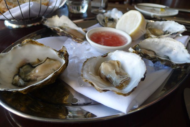 There are lovely touches here; wine available by glass, bottle or 500 ml carafe. Oysters arrive with a weak mignonette, lemon halves sheathed in cheesecloth to prevent errant pips. The salt on the table is in fat flakes, the pepper ready to grind fresh.