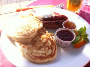 Others may be more swayed by the fat discs of pancakes in the Lumber Jill (£7.95), two Canadian pancakes, topped with maple syrup, with bacon, sausage and an egg on the side. Perfect for those (like The Hungry One) who often can’t choose between sweet and savoury).