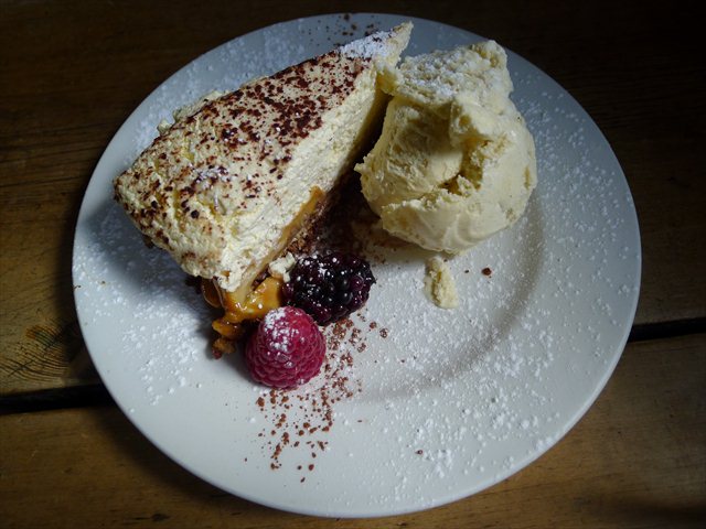I’d be lying if I said The Hungry One wasn’t a little disappointed not to find an Eton Mess on the menu, being so close to the source and all. If like Queen Victoria (whose love for the sweet stuff was supposedly so great that by the end of her life she was sporting wooden teeth) you need something sticky to round out your meal, there’s always banoffee. Here it’s taken to extremes with a rice krispy/mars bar base and a fat cap of whipped cream (and ice cream).