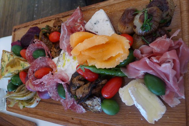 At £9.95 per head the antipasti platter comes groaning with food. Melon that’s drippingly ripe, cippolini onions that are soft, dark and sweet, splodges of caponata, roasted fronds of fennel, eggplant and roast beetroot all cuddle up with pockets of cured meats, cheeses and a ball of burrata that would set you back £6 at Borough market alone.