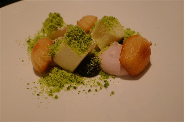 Dessert is a gentle hop and a skip through sweetly comforting flavours in some surprising textures. There’s wild blackberries hiding in a rich gel and also a pillowish mousse. Above it there’s heather honey squares of parfait. There are three warm madelines, appearing more like seashells in this coastal setting than they ever have. Over the top is a dusting of pistachio praline.