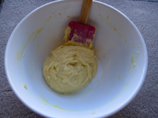 7) Pour half of the egg mixture into the batter and stir keenly to get the batter to absorb the egg. It might look like it won’t do it and resemble a bit of a sloppy curdled mess,  but persist. It will.