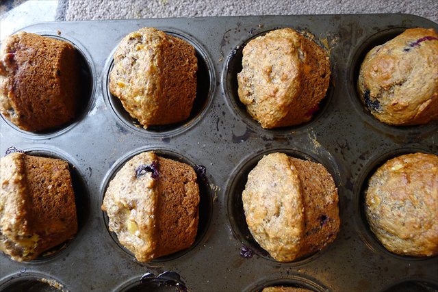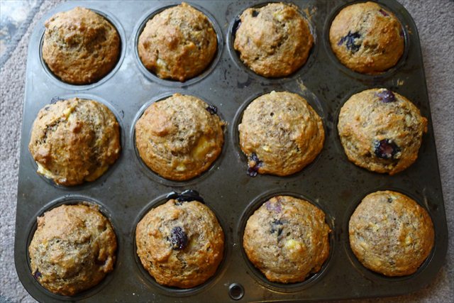 7) Bake for 20 minutes, until the muffins are puffed and a skewer comes out clean.