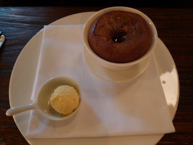 Its dsijointed presentation dominates the table- there’s an element of DIY in composing the plate yourself- and some canny sense in serving the beef on a black board- no chance of being greeted by a puddle of leaching pink meat juice if the resting process has been rushed on the pass. For me there’s little need to upsize to the sirloin or cote, there’s always great flavour in a bavette- and if cooked carefully, it’s perfectly tender (which this was). As for the bearnaise- it’s a textbook iteration, strident with tarragon and gloopingly soft.