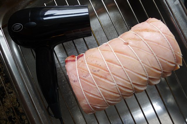 4) After that, be sure to dry the rind very well. Paper towel is good. I’m a little obsessive, so I take to it with a hairdryer for a couple of minutes.
