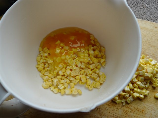 4) Place the corn and the egg in a bowl and use a stick blender (or place in a food processor) and blitz until largely smooth.