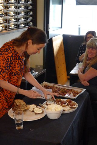 The wonderful Patricia Michelson, co owner of La Fromagerie then demonstrated their technique of making labna (the trick for them is the mix of yoghurts- cow, sheep and goat all make an appearance). We then used that to gild tartines with roasted red grapes and walnuts.