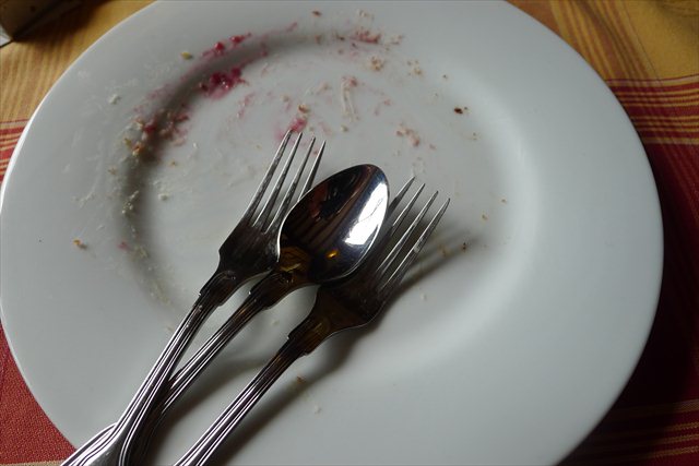It’s best to start at the bottom. This is not a cake you need in your life. There’s a congealed edge to the fat skin of cream on the top- like bath foam that’s been left to dry overnight on the lip of a sink. The two layers of cake are dark and dry. The cherry studded chocolate mousse in the second bottom layer adds a certain textural novelty and softness, but even it can’t rescue the rest. This is a sad cake for desperate times. It’s the sort of slice you’d expect to find at a authobahn buffet restaurant at 6 am on a Thursday, or be tempted to eat late at night when deeply intoxicated- before waking at the table with crumbs on your cheek and a stomach filled with regret.