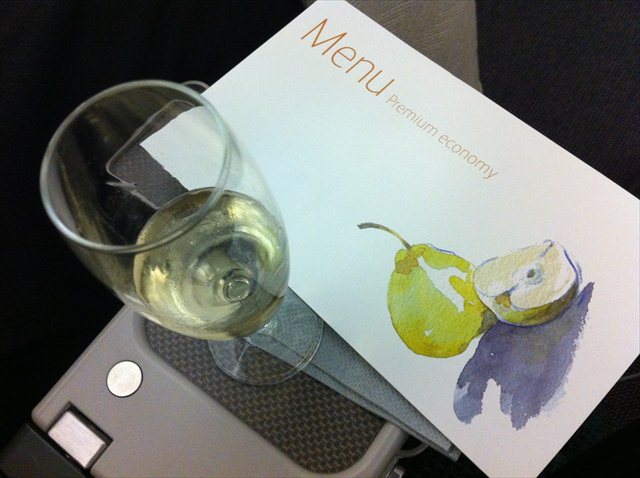 There are nice touches, from better quality blankets and pillows, an amenity case with socks, earplugs and an eye mask , a printed menu for your meals and a complimentary bottle of water to keep with you. And then there’s a glass of champagne or juice before take off. That’s always friendly.