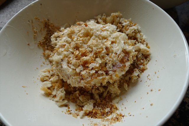 5) Transfer back into the milk/yoghurt and then dredge in the breadcrumbs.