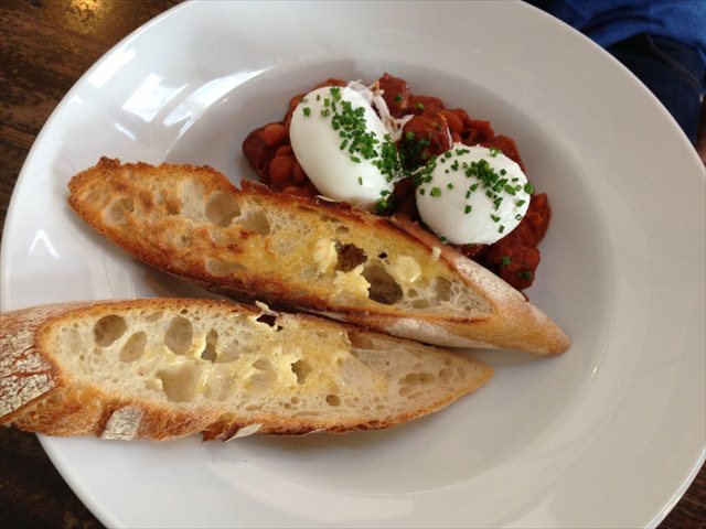 And the baked beans with chorizo and poached eggs and sourdough baguette first thing in the morning is fortifying fodder- the beans rich and tottering towards that fine line of sweetness, but not out-of-the-can-sickly.