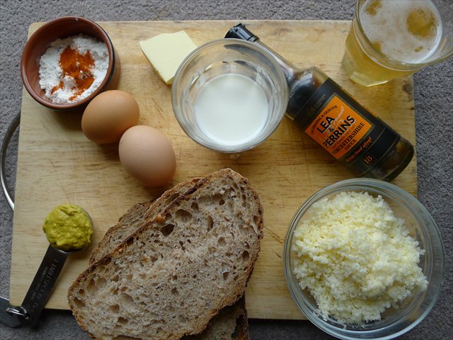 Take my suggestion; open a decent beer, both to calm your frayed nerves (whether from travelling or from life…) to assist in the sauce. Pluck from the fridge some mustard and Worcestershire sauce. Then rescue from the freezer bread and the grated cheese you keep in there for emergencies. What you have from there is the start of a steadying snack for any time of day of night. In one slice it manages to remind me of both the just-out-of-reach allure of travel and the comforts of being swaddled at home.
