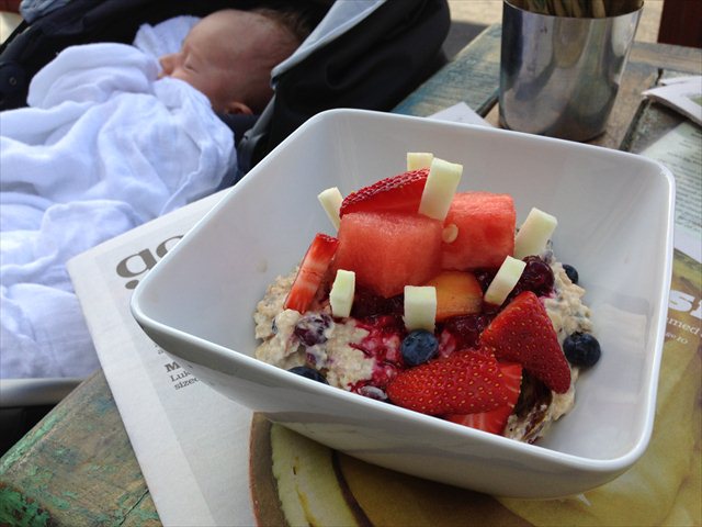 And lastly, Will and I have become somewhat attached to the architectural version at Baffi and Mo in Redfern. We like to sit there on a Tuesday morning, after we’ve been to the post office. I’ll read the Good Food section, he’ll have a snooze and we’ll make our way through a square bowl crammed with yoghurt soaked oats topped with fruit and a berry compote.