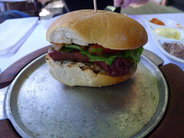 There are as many parrillas in Buenos Aires as there are twinkle eyed elderly gentlemen keen to persuade young ladies to join them on a dance floor. But La Cabrera is where you want to go. On the tree lined streets of Palermo Viejo there are now not one, but two outposts of this famed parrilla, such is its popularity. It’s the sort of steak house you doodled a sketch of when you were busy booking flights to South America. The chairs are wooden, the tablecloths white. The food comes on wooden boards and there’s a serious knife to go alongside it.While the main event will be beef and sides, at La Cabrera it would be a mistake to overlook starting with the choripan roll, with griddled chorizo, bitter leaves and roasted tomato.