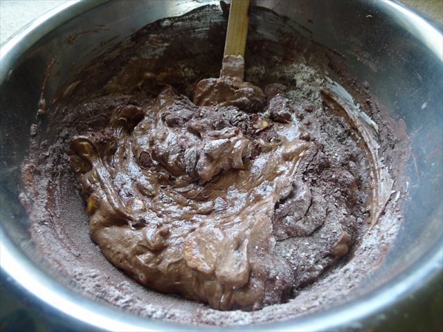 8) Fold in the remainder of the dry ingredients.