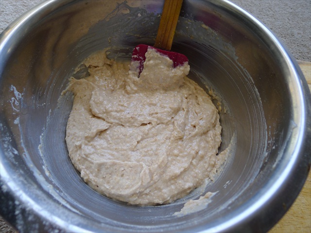 5) Sift in the flour, cinnamon, baking powder and salt. Stir to combine.