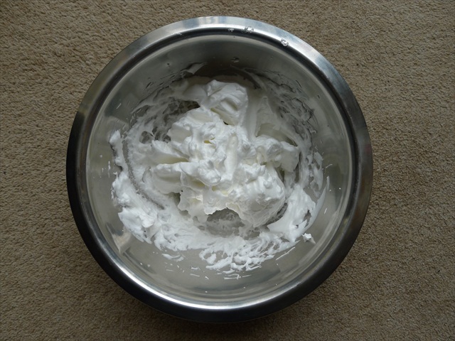 4) Use a slotted spoon to remove and allow to drain on paper towel. Repeat until you have used up all the meringue (should make around 12 ‘Islands’).
