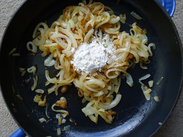 9) Add the tbsp of flour to the fry pan and stir to combine.