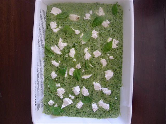 8) Top with the crumbled feta/goat cheese and the remaining mint leaves.